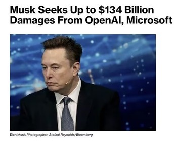In January 2026, Elon Musk took OpenAI and Microsoft to court, claiming a compensation amount ranging from 79 billion to 134 billion US dollars.